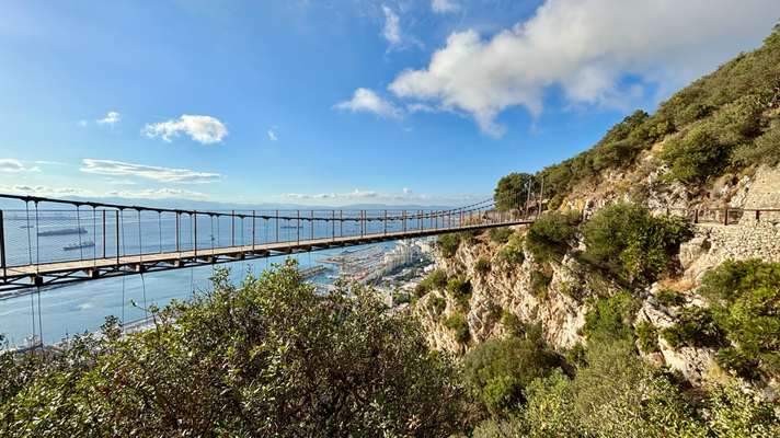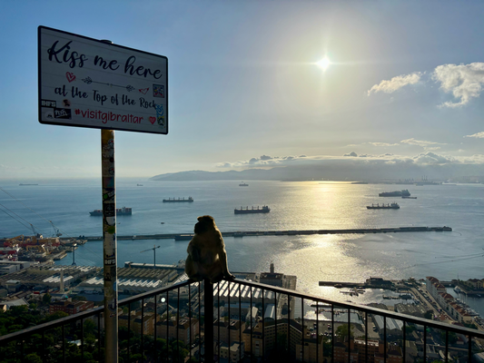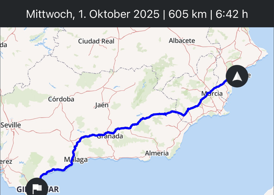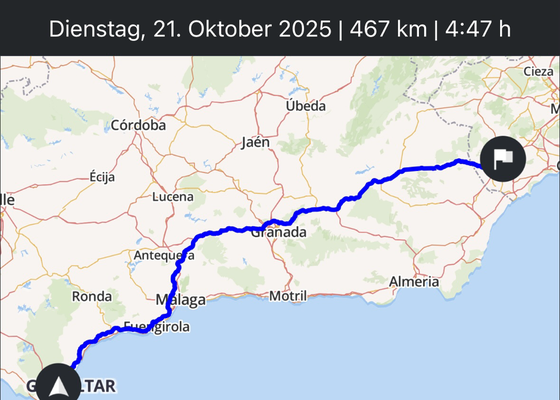 Und täglich grüßt das Murmeltier. Denn erneut war am dritten Tag unser Sitzfleisch für 753 Kilometer auf der spanischen mautfreien Autobahn gefragt, welche wir uns mit zahlreichen deutschen Wohnmobilen und Anhängern, die in den Süden flüchteten, teilen mussten. Diesmal jedoch bei ganztägigen angenehmen 25 Grad Celsius und Sonnenschein. Wobei uns Alicante tatsächlich mit etwas Nieselregen gegen 17.30 Uhr empfangen hat, was uns aber mit Blick auf den mediterranen Flair nicht weiter störte. Außerdem sollte unsere letzte Etappe am vierten Tag umso schöner werden, denn es ging auf der A92 bei 22 Grad Celsius und großteils über 1000 Höhenmetern nach Gibraltar. Ganz überrascht von dem landschaftlich bezaubernden Verlauf unserer Strecke durch Hochebenen und Gebirgszüge kamen wir bereits 16 Uhr in unserer Unterkunft an. Die Einreise in die britische Enklave war mittels Personalausweis absolut schnell und unkompliziert. Die Parkplatzsuche hingegen war selbst für uns als Motorradfahrer eine riesige Herausforderung, da nur spezielle „MOTO“ Stellplätze benutzt werden dürfen. Das britische Überseegebiet mit Rechtsverkehr ist wahnsinnig voll, dicht besiedelt, liegt am Rock of Gibraltar und beherbergt obendrein noch einen Flughafen. Also viele Einwohner, Touristen und Fahrzeuge auf kleinstem Raum. Aber es funktioniert und wir mittendrin. Trotz der hohen Temperaturen von 28 Grad Celsius, haben wir es uns nicht nehmen lassen und sind den Berg bis zur Hälfte hochgestiefelt. Dieser diente früher als Festung zur Verteidigung und wird heute von Berberaffen als Lebensraum genutzt.