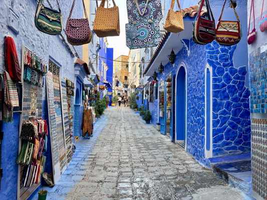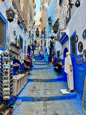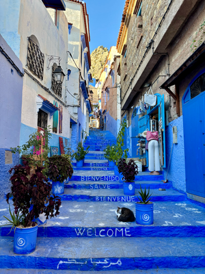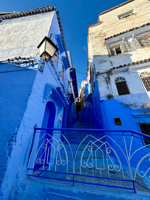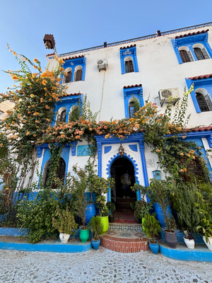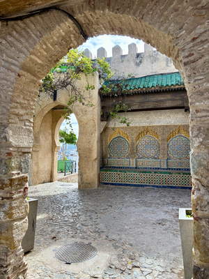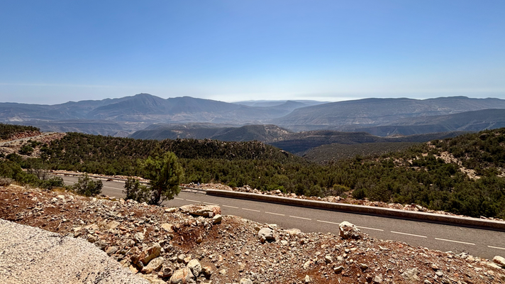 Der Tag begann kurz nach halb 8 mit den ersten Sonnenstrahlen bei 18 Grad Celsius und den Weckrufen von Trut- und Haushahn. Es standen 284 Kilometer auf kleinen, kurvenreichen und gut asphaltierten Nebenstraßen bis nach Fès an. Das Atlasgebirge thronte hinter uns, aber die vorgelagerten Hügellandschaften, welche immer noch über 1500 Höhenmeter aufwiesen, waren nicht weniger abwechslungsreich. Unser Weg führte uns durch Steppen, Wälder, Olivenplantagen und Nationalparks, wo sogar wilde Berberaffen unseren Weg kreuzten. Kurz vor 16.30 Uhr erreichten wir unser Dar Ziryab, eine echte Perle in der Großstadt, deren älterer Eigentümer hervorragend deutsch spricht und uns sämtliche Informationen zur Besichtigung der Stadt mitgab. Wobei uns die detailverliebte Unterkunft fast mehr beeindruckte als zum Beispiel die Tore des königlichen Palastes oder der Medina. Am nächsten Morgen rollten wir die Motorräder wieder aus den Innenhof und starteten unsere Etappe nach Chefchaouen. Diesmal war die Route weniger attraktiv und der Asphalt war schrecklich, denn es gab zahlreiche Schlaglöcher, riesige Bodenwellen und viel Split in den Kurven. Nach 215 Kilometern und bei 30 Grad Celsius konnten wir in unserem Vier-Sterne-Spa-Hotel aufatmen, duschen und uns in die wunderschöne blaue Medina begeben. Wir schlenderten durch kleine Gassen mit wenig Touristen und kaum aufdringlichen Verkäufern. Es war sehr angenehm im Gegensatz zu gestern in Fès. Im Restaurant Triana mit Bergterrasse dinierten wir sehr lecker beim Sonnenuntergang.